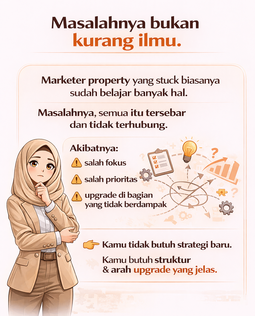 Kalau kamu sudah posting, pasang iklan, ikut kelas, dan balas WA setiap hari tapi hasilnya tidak konsisten,